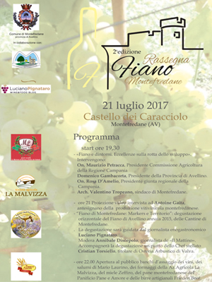 manifestiSecond Edition of "Rassegna Fiano Montefredane": a tour that aims to introduce a rich culture, history and tradition through a horizontal tasting of Fiano di Avellino DOCG and Fiano sparkling wines from the 8 wineries of Montefredane. The tasting of the vintage 2015 will be guided by the food and wine journalist Luciano Pignataro.
